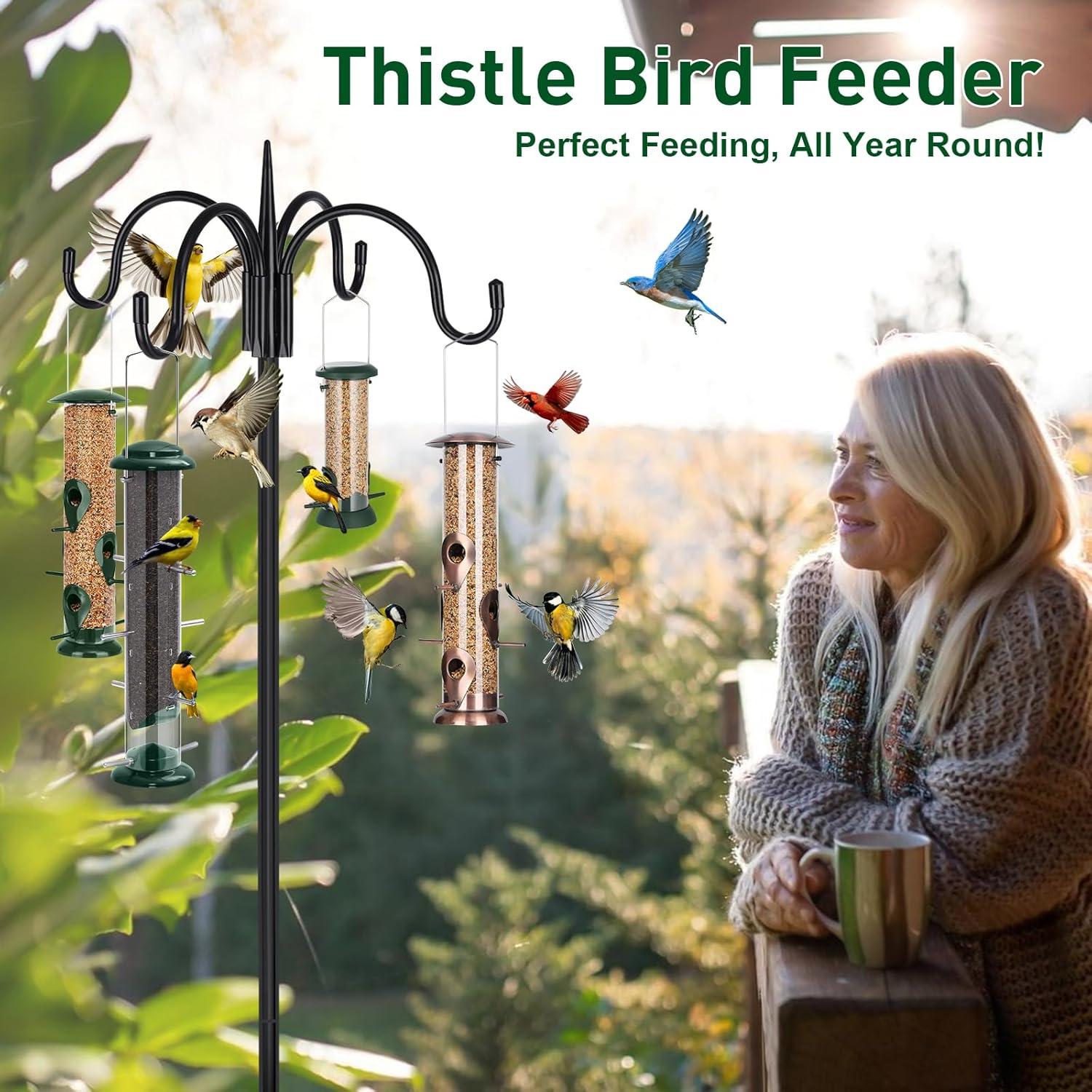 【Perfect for Nyjer/Thistle Seed】Designed to hold Nyjer (thistle) seed, this finch feeder attracts goldfinches, finches, chickadees, sparrows, and other small songbirds. Bring lively birds to your backyard or patio