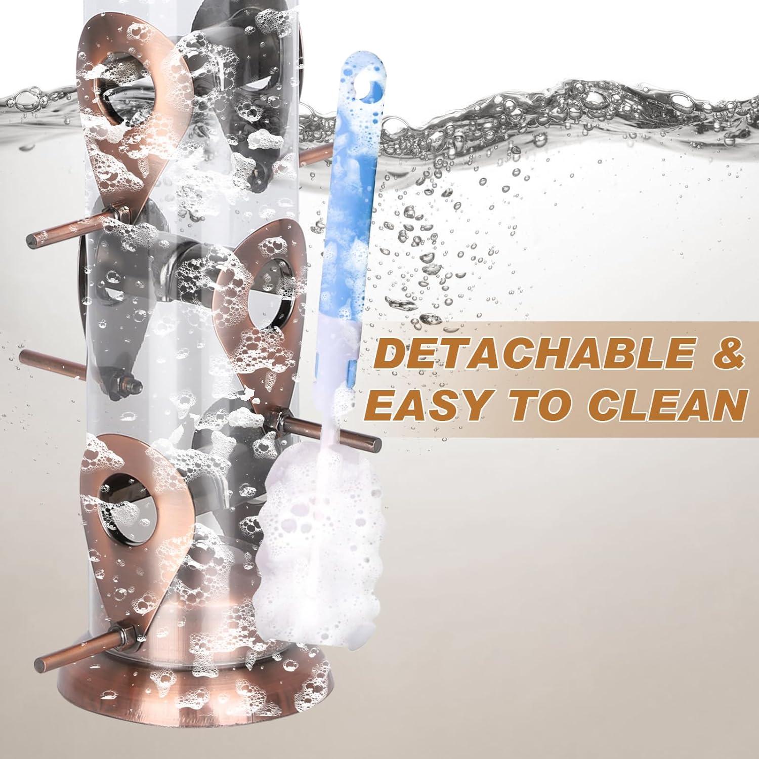【Easy to Refill & Clean】Wide lid allows quick, mess-free seed refills. Simple, tool-free design makes disassembly easy for fast cleaning. Just rinse and dry to keep the thistle feeder clean and thistle seed fresh
