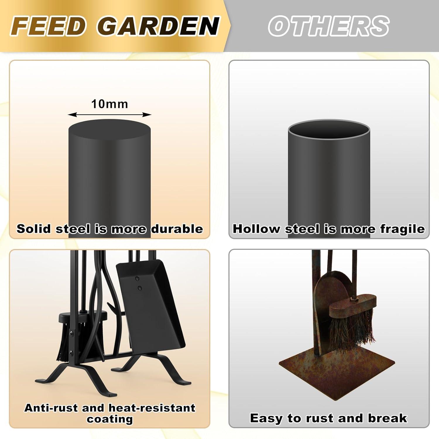 【Sturdy & Durable】Our fire pit accessories for outside is made of high-quality wrought iron, ensuring greater durability. Moreover, the metal rods are solid core with a diameter of 10 millimeters, not easy to bend or break. The fireplace set tools are coated with a unique heat-resistant black powder to prevent rust and corrosion. Even exposure to high temperatures near the fire, it still promises a long-lasting performance.