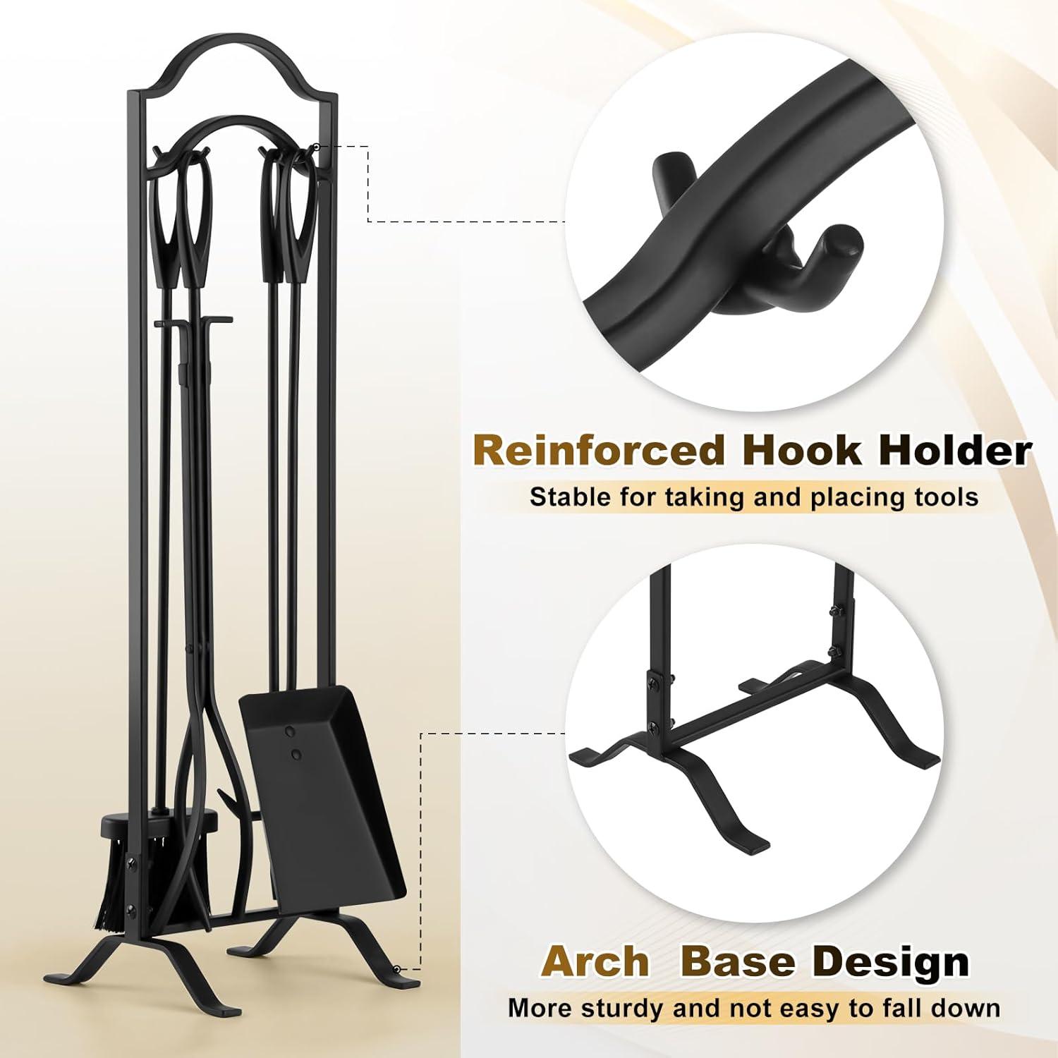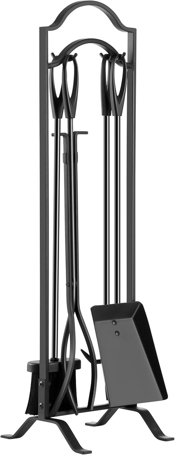 【Modern Fireplace 5 Pieces Tools Set】 The 29-inch tall fireplace tools set comes with a sturdy stand, heavy-duty base, ash brush, shovel, long tongs, and poker, all in a set of 5 pieces. Its modern black design not only perfectly meets your practical needs of indoor fireplaces, fire screens, wood stoves, and outdoor fire pits, but also plays a very good decorative role.