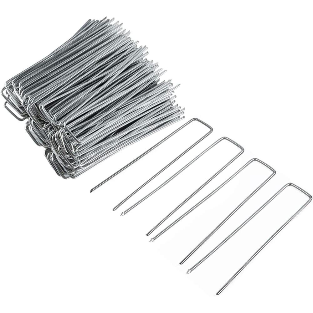 【PACKAGE INCLUDED and SIZE】The 11 gauge 50 Pack landscape fabric staples are 4 inches long, the top width is 1 inch, the width below is 1.5 inch. This heavy duty and adjustable garden stakes can hold a variety of garden and landscape objects.