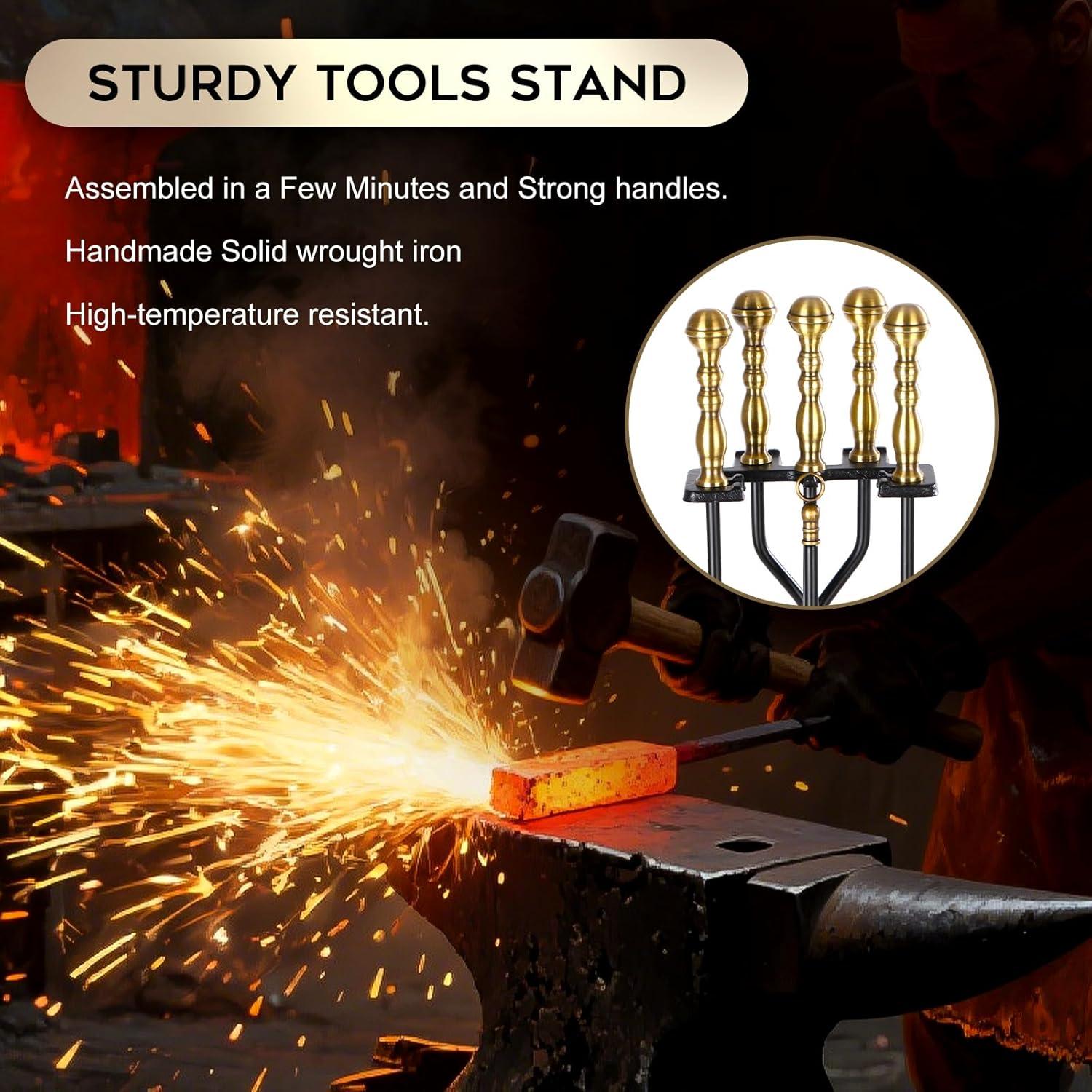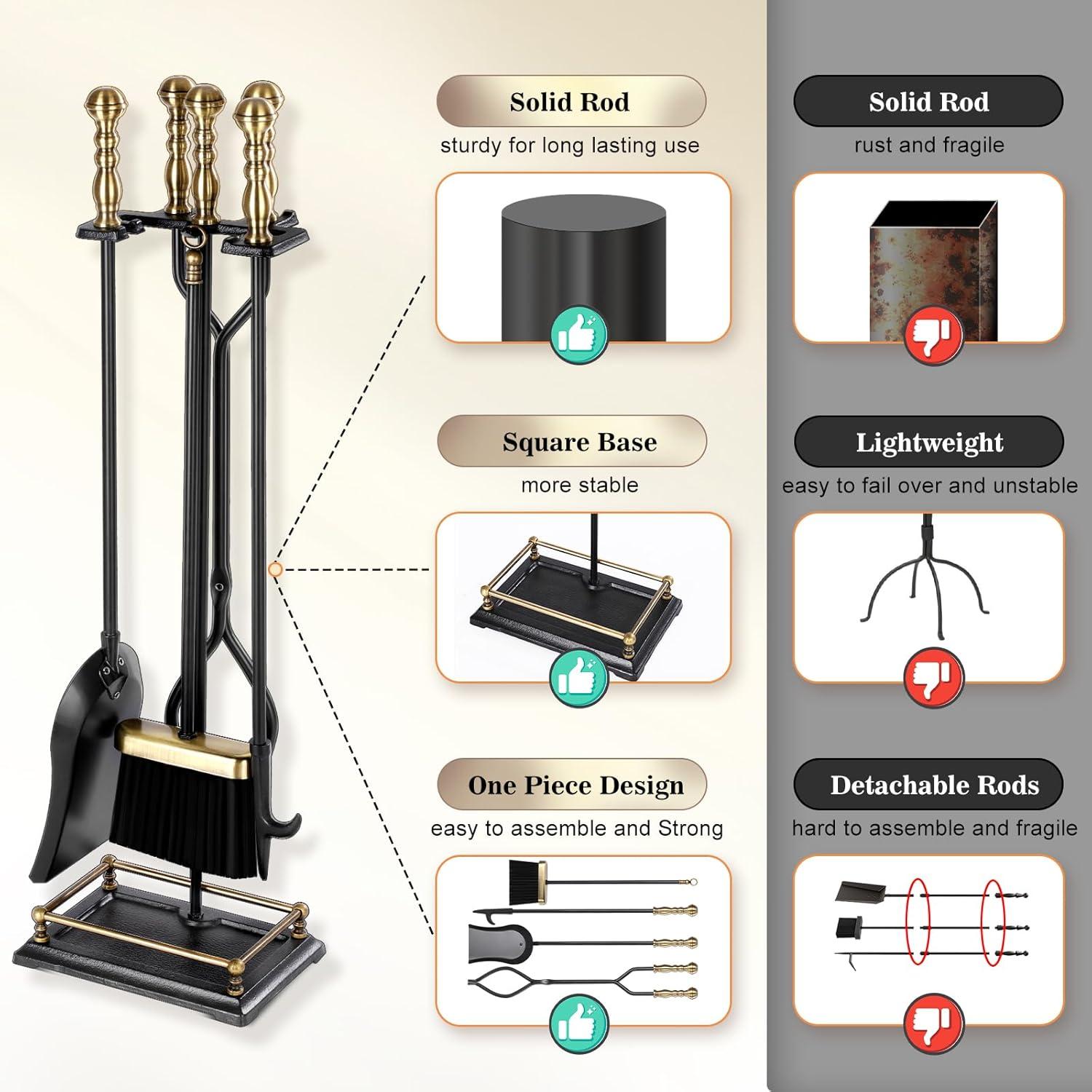 Easy to Assemble: This 5-piece fireplace tool set comes with a detailed instruction manual showing all parts and installation steps; you can assemble this fireplace tools stand in just 10 minutes; the practical and decorative design blends perfectly with modern fireplace décor or outdoor fire pit tools setups