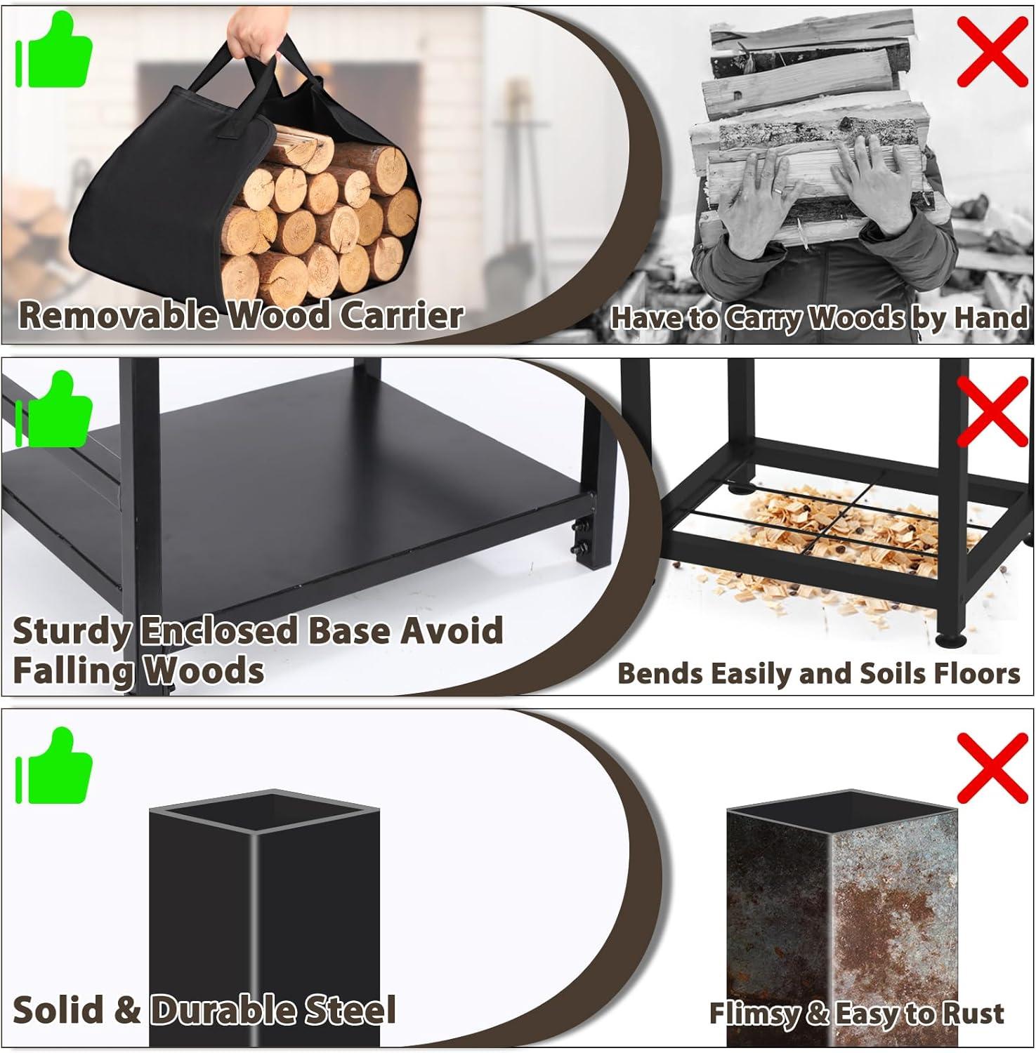 Include Firewood Carrier Bag: FEED GARDEN wood holders firewood indoor comes with a lightweight and portable wood carrier bag, providing more convenience for moving wood from your woodpile to the fireplace